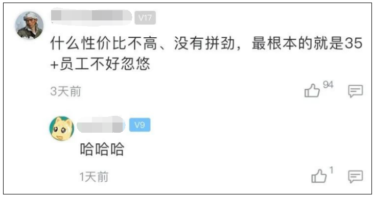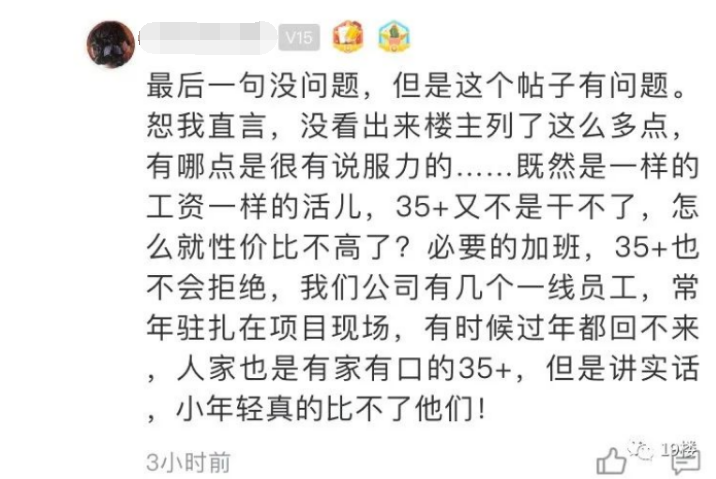 在帖子的评论区,不少网友都指出,楼主说的“性价比不高”其实是中年员工没有年轻人好忽悠了。