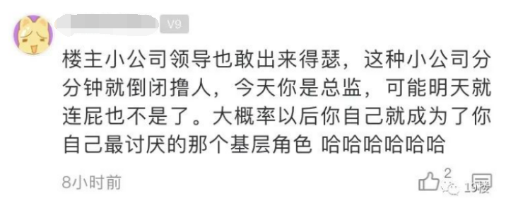 很多网友说,楼主虽然是个管理层,但其实也是在给大老板打工,不要以为中年危机不会降临到自己头上。