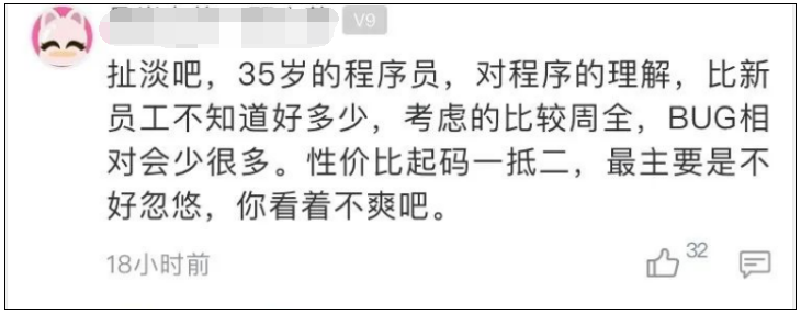 还有网友以专业人士的身份反驳了楼主的说法,表示35岁以上的程序员对工作的理解要比年轻人好得多,不会制造那么多bug。