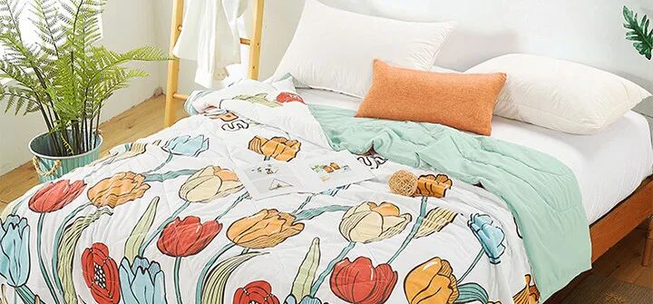 可水洗,不掉色、不起球、不变形!水洗棉印花被子,轻薄柔软,吸湿排汗。 清爽不闷热,纵享夏日舒柔睡眠。