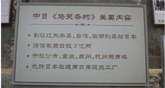 甲午战争以后,清政府被迫与日本签订又一个丧权辱国的条约《马关条约》,承认日本对朝鲜的控制、割让台湾等岛屿、赔偿2亿两白银、开放部分市场……