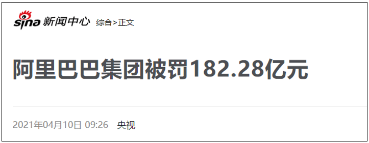 根据反垄断法第四十七条、第四十九条规定,综合考虑阿里巴巴集团违法行为的性质、程度和持续时间等因素,2021年4月10日,市场监管总局依法作出行政处罚决定,责令阿里巴巴集团停止违法行为,并处以其2019年中国境内销售额4557.12亿元4%的罚款,计182.28亿元。