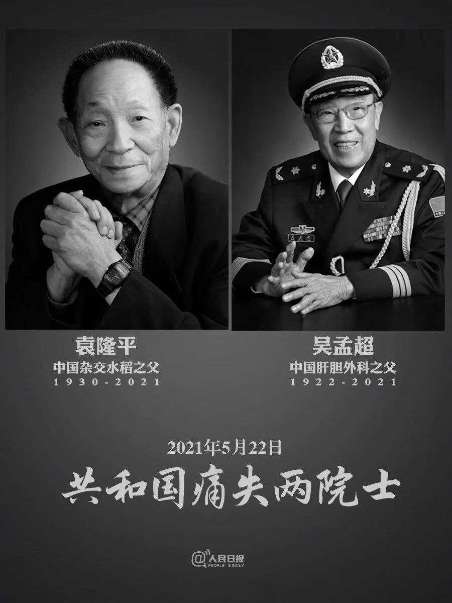 2021年5月22日,“中国肝胆外科之父”、中国科学院院士、原第二军医大学副校长吴孟超因病医治无效,在上海逝世,享年99岁。