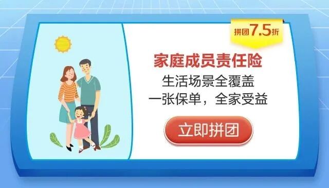 人保拼团购,保障不打烊,超低价格更省钱!点击“去参团”,与现有已拼保单拼团,填写信息进行支付,立享超值优惠!