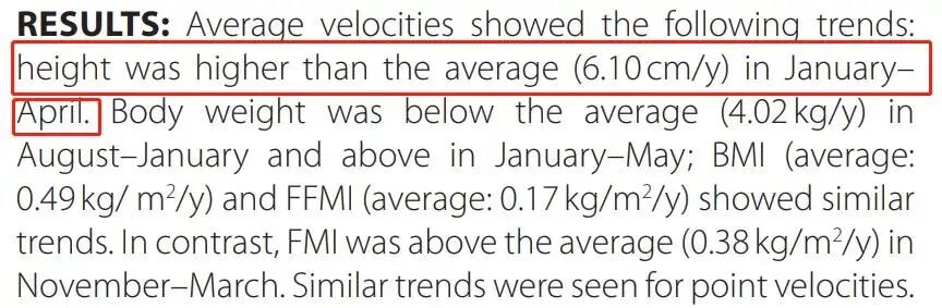 研究人员挑选了760名8-11岁之间的丹麦儿童。经过非常复杂的统计,研究人员得出的结论是——1月至4月在一年当中,的确就是儿童生长发育最快的阶段。