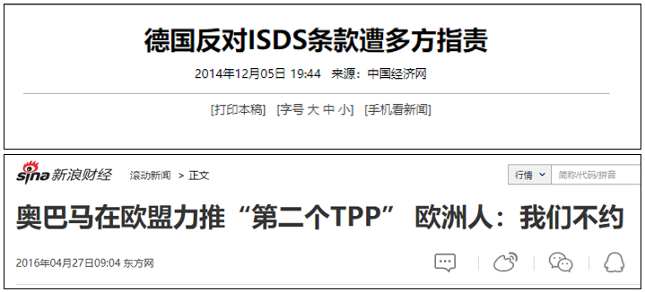 因为TTIP里面有一个非常重要的条款:ISDS条款。