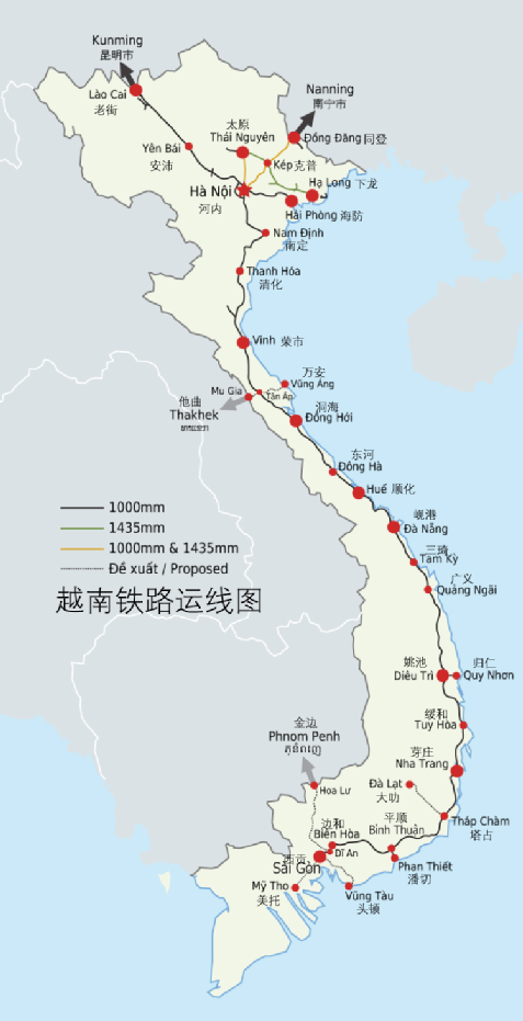 据悉,目前越南铁路线包括连接中部西原的铁路,抵达芹苴的铁路,从西贡到盖梅-市瓦港(Cai Mep - Thi Vai Port)的铁路,海防-河内-老街的铁路,以及河内-谅山同登的铁路等,都已经规划了与国际铁路对接。
