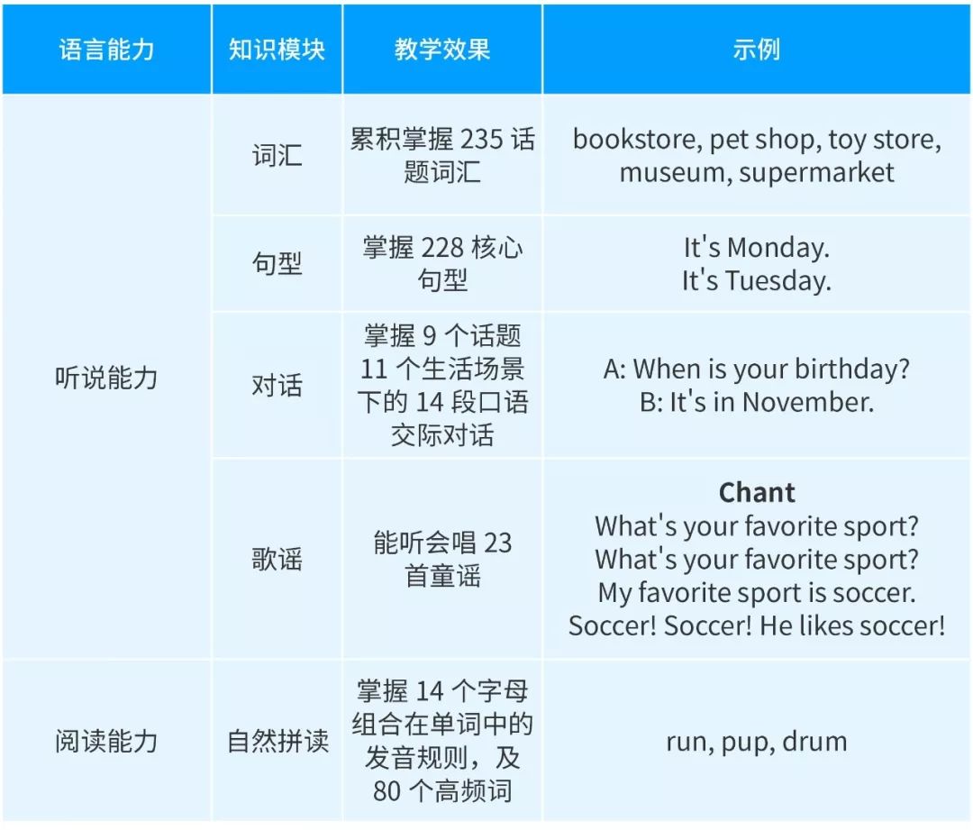 鲸鱼GKB级别的课程目标是掌握235个词汇,228个句型还有对话和自然拼读等,其中学新知识的课时安排是18节,平均一节课要学约13个单词,12-13个句型。
