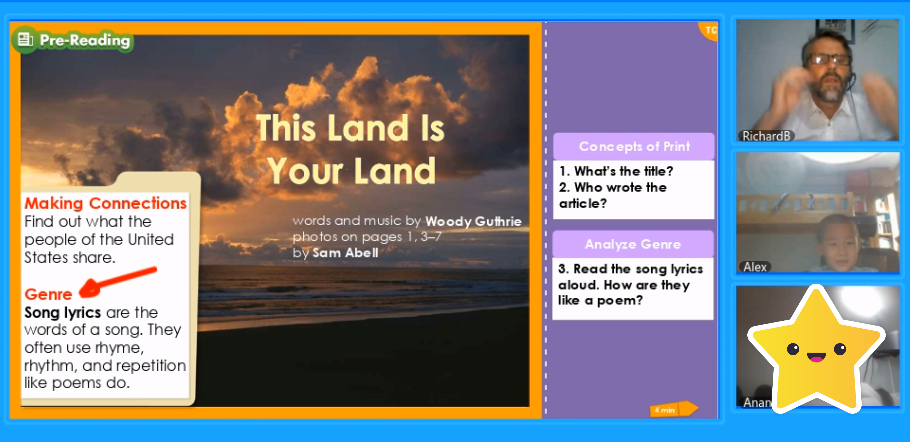 在前不久的美国总统拜登的就职典礼上,一名歌手演唱了美国最著名的民谣之一《This Land is Your Land》。当时 Alex 非常激动,和我说这首歌他学到过。