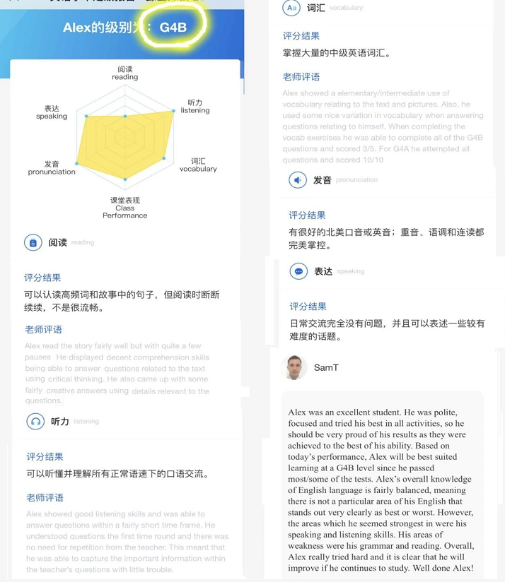 2年学习下来,Alex 从GKA的拼写单词,到G2B能创作有逻辑性的句子和段落;再到现在G4B已经能独立完成一篇完整的作文,回顾Alex的整个写作成长历程,给我的震撼还是很大的。