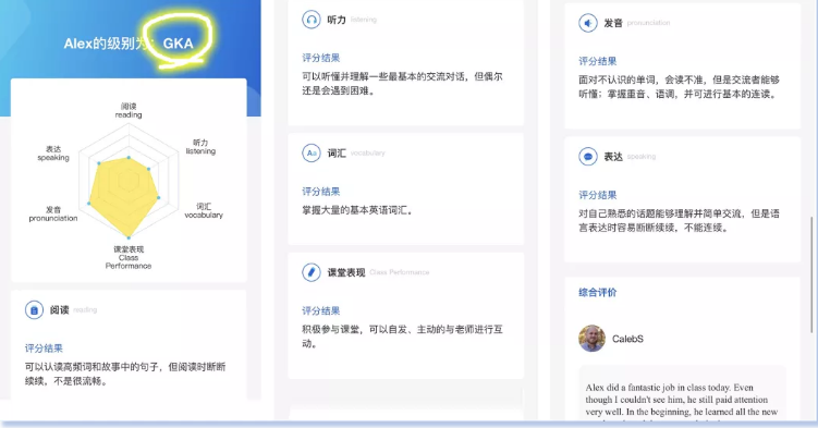 最后在朋友的推荐下,我开始给Alex尝试鲸鱼的外教课,当时 Alex 6岁,上的是对应年龄段6到8岁的GKA 级别课程。