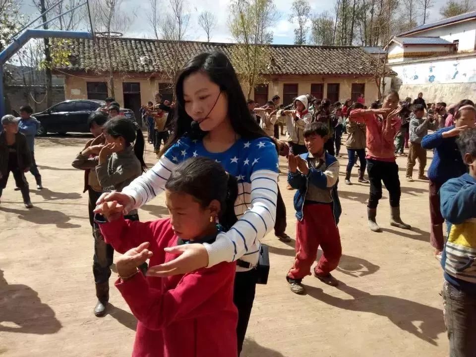 四川大凉山俄青小学老师在指导孩子们练太极拳