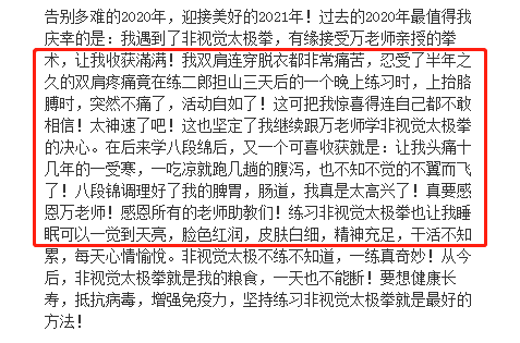 而对已经在练非视觉太极的伙伴,这也是重要的辅助功法,可以增长功力。两者方向一致,使用情况不同,都可以尝试。