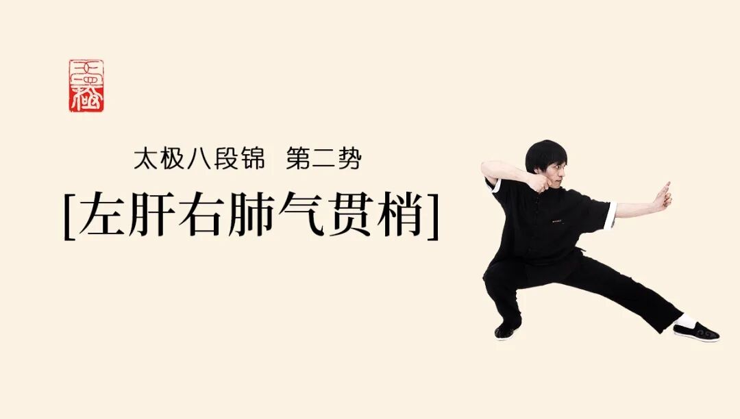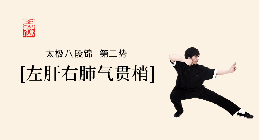 太极八段锦也是八势,我们用第二势「左肝右肺气贯梢」来举例。