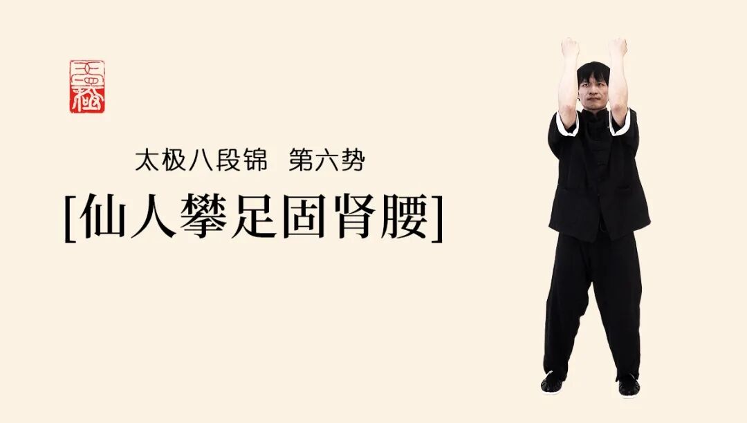 第六势:此势固摄先天之本,充盈肾气,通督脉、肾经、膀胱经等。