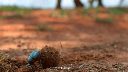 为了能够顺利将粪球搬运回家,它需要克服很多障碍:翻越巨型动物踩出的大山、大海,躲过狂奔的象鼩的“肇事逃逸”,一次次失败,再坚持,努力最终得到了回报,一个完美的粪球和一个配偶。