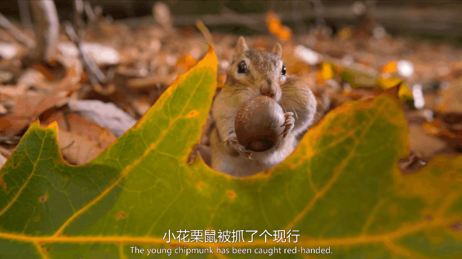 还有拼命往嘴里塞满橡子的花栗鼠: