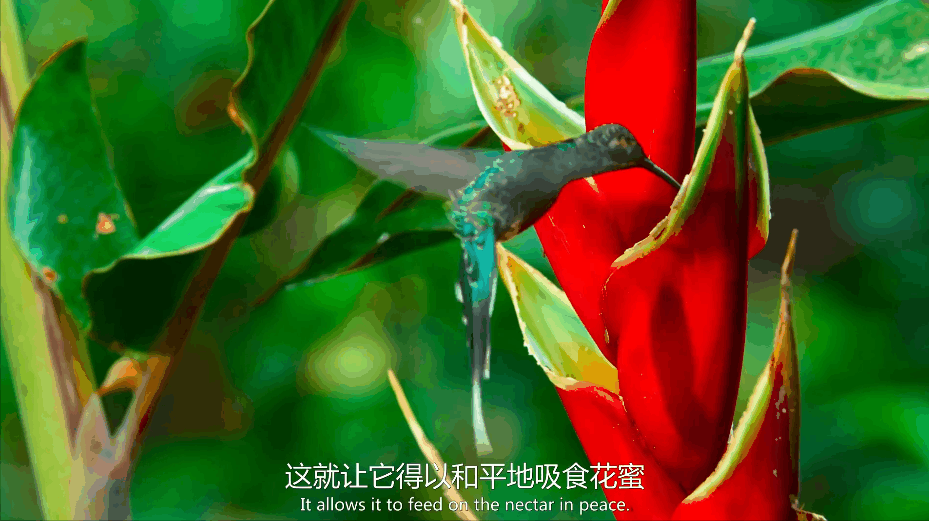 我们可以清晰地看到绿隐蜂鸟的舌头,是如何摄入花蜜的。