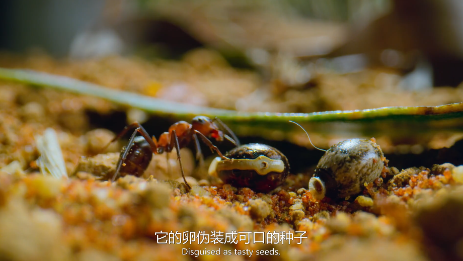 它们的卵像植物种子,顶部有部分能食用,蚂蚁们误以为这是美餐搬回了蚁穴中,食用后剩下的部分便是真正的虫卵,它们得有在蚁穴中安全孵化。