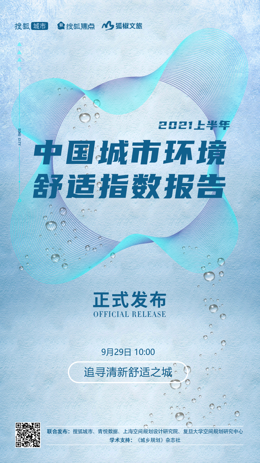 为了客观评估中国城市环境舒适度水平,继今年6月一季度报告发布后,9月29日,搜狐城市再次联合青悦数据、上海空间规划设计研究院、复旦大学空间规划研究中心三大专业机构,重磅推出《2021上半年中国城市环境舒适指数报告》,本报告由《城乡规划》杂志社提供学术支持。