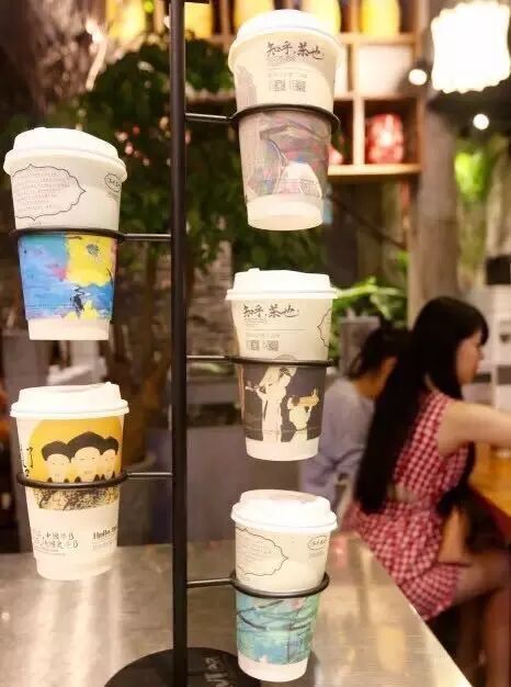 每一款不同的茶品,都会搭配不同色调、图画的杯子,相比于其它品牌千篇一律的杯装,茶颜悦色显得更精致,在鸟、木、水、花、古典美女的烘托下,像一个艺术品。