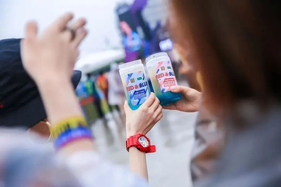 在OPPO为年轻人打造的音乐狂欢节-红蓝音乐节中,奈雪与OPPO联合打造出时尚渐变的红蓝特饮。音浪汹涌,全场红蓝,近万名年轻人在这里释放了年轻的能量,也对奈雪这一快闪产品留下了深刻的印象。