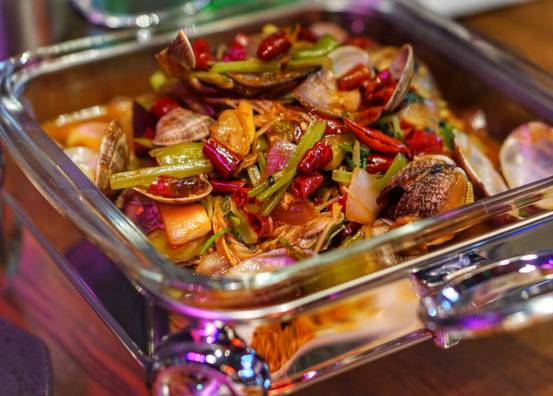 辣炒蚬子,蚬子很干净,鲜活的口感让人猛吞口水,鲜美至极~