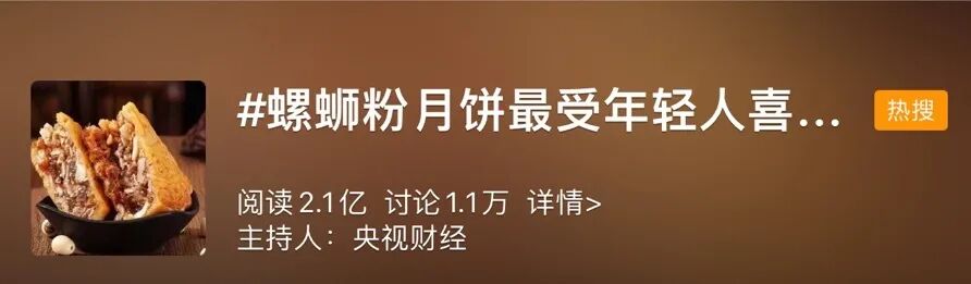 而在今年,螺小匠“螺蛳粉月饼”顺利杀出重围,喜提微博热搜。