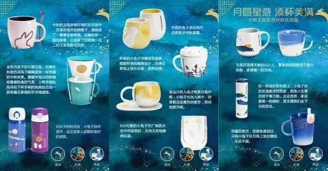 比如星巴克2016年除了推出主打的星情、星悦、星奕三款月饼礼盒之外,还有中秋主题的周边商品——杯子与星礼卡。