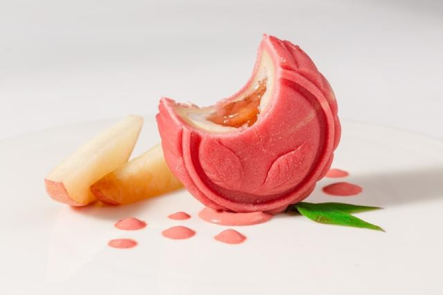 良品铺子利用“四重包馅”工艺,破除了高温烤制难以维持鲜果口感的技术难题,一口气做出了葡萄、柠檬、白桃、草莓4种水果月饼。