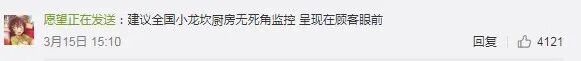 事件发生后,小龙坎在其官方微博发布道歉声明,同时公布了6条监管措施,包括全国门店上线“5G智慧厨房”、360°无死角监控系统由总部24小时监督、采用门店信用制度等方式加强监管等。