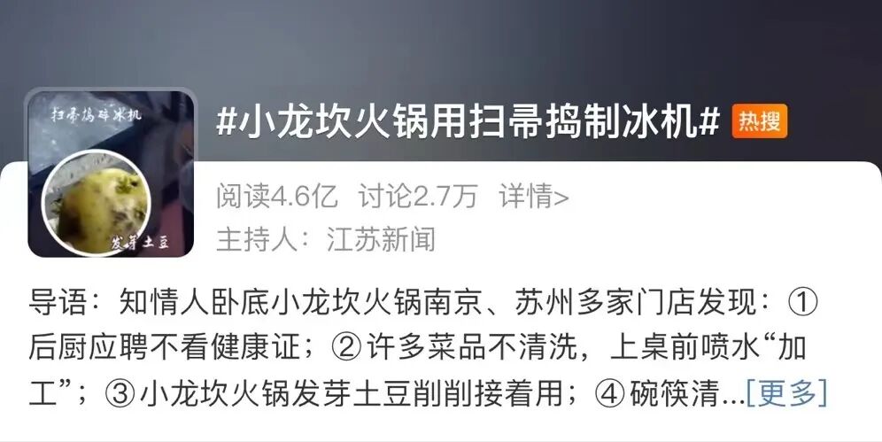 该事件在网上闹得沸沸扬扬,小龙坎被骂上了热搜,虽然小龙坎第一时间站出来道歉,但从网友们的反应来看,恐怕是“亡羊补牢,为时已晚”!
