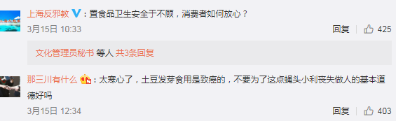 知情人提出土豆发芽后不能使用后,工作人员表示不可能不要。