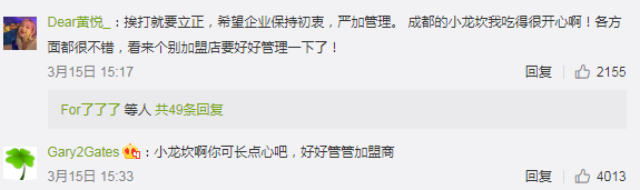 面对种种质疑,小龙坎作出的应对整体而言比较积极合理。小龙坎分别在官微、官网进行通报公示,表现出勇于担责、开放监督的态度,一定程度上缓解了此次舆情对自身造成的影响。