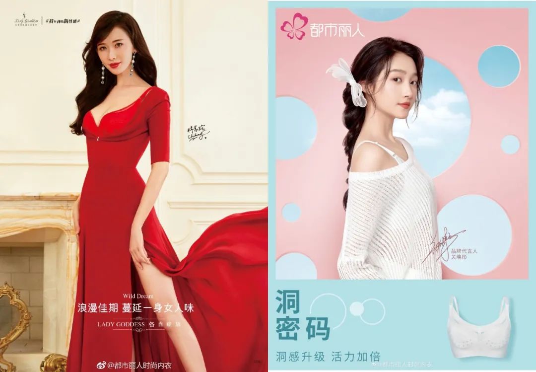 比如CK的亚洲区女性形象大使一直是性感的泫雅,后来又增加了拥有女性中性美的刘雨昕;有“中国版维密”之称的内衣品牌都市丽人,将代言人由身材火辣的林志玲换成了青春活力的关晓彤,强打品牌的年轻时尚感。