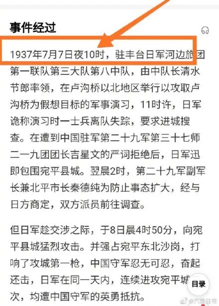 但学过中国近代史的人都知道,1937年7月7日是“七七事变”发生的日子,“七七事变”开始的时间就是晚上10点。