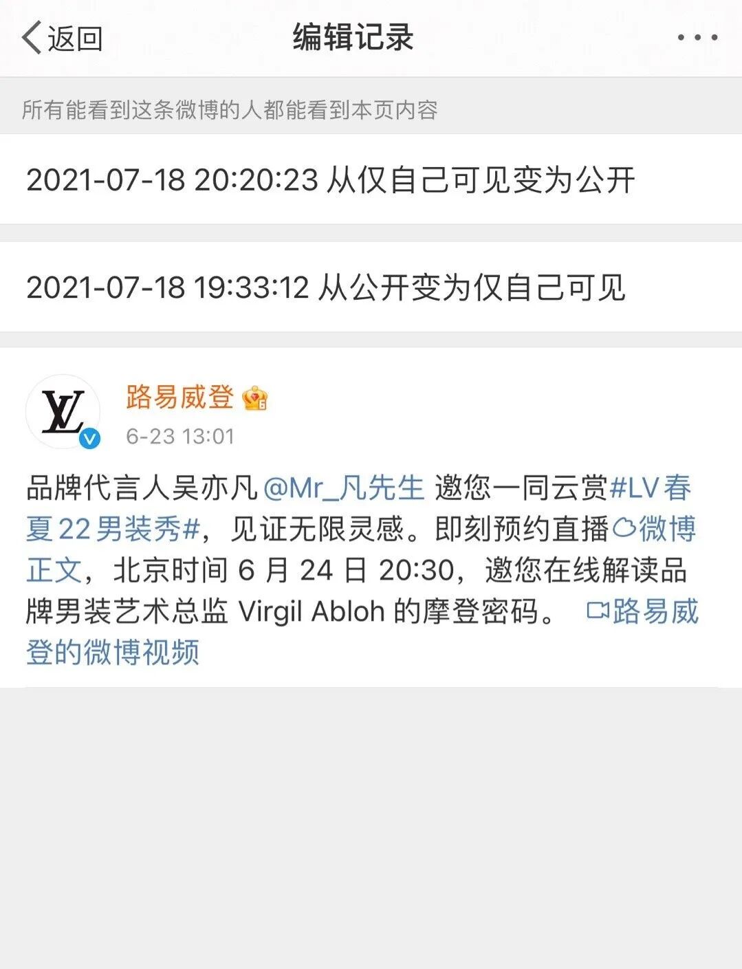和兰蔻同样有“两幅面孔”的,还有路易威登。在舆论发酵初期,路易威登将吴亦凡的相关微博设置了仅自己可见,但随后又转成公开,目前依然没有任何回应,不知道在“头铁”什么。