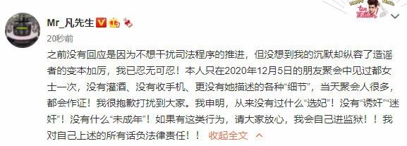 吴亦凡也发微博否认了指控,并表示“如果有这类行为,请大家放心,我会自己进监狱!!”