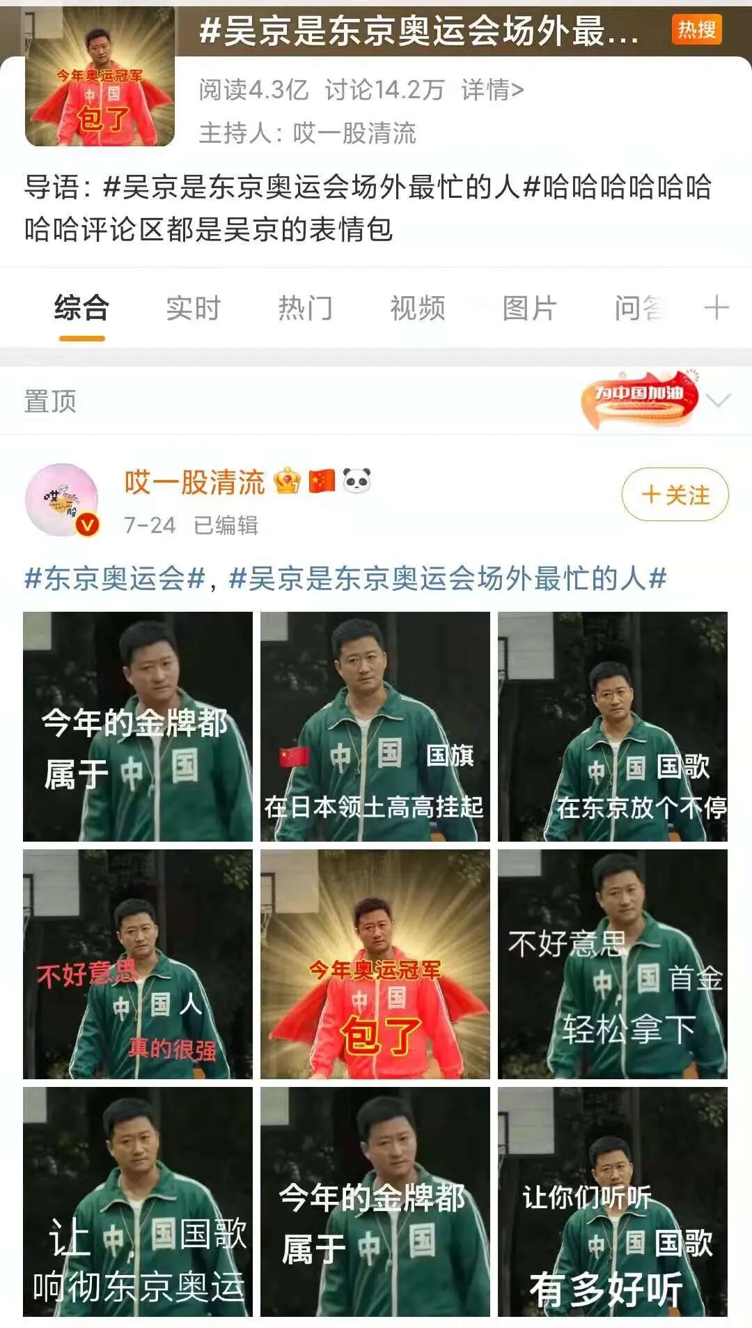 除了京图,还有网友拿吴京的名字玩起了各种谐音梗,为中国奥运军团加油↓