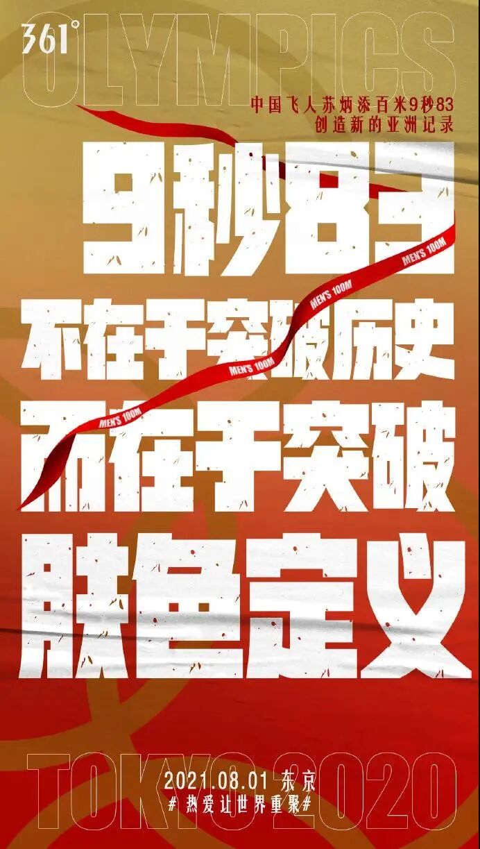 不在于突破历史,而在于突破肤色定义。一直以来,跑步一直不是亚洲人的强项,亚洲人身体先天不占优势,这次,苏炳添打破了亚洲记录。就像361°说的“打破肤色定义”一样。
