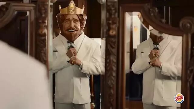 在汉堡王最新发布的广告片中,汉堡王的那个国王角色穿上白色西装,把头发梳成大人模样,戴上了一颗非常显眼的金色戒指——镜头扫到半身,会发现他这一身与肯德基上校的样子非常相似,而且视频中的声音还特地使用了美国南方口音,正是因为肯德基上校来自南方,这其中的意味,不言而喻。