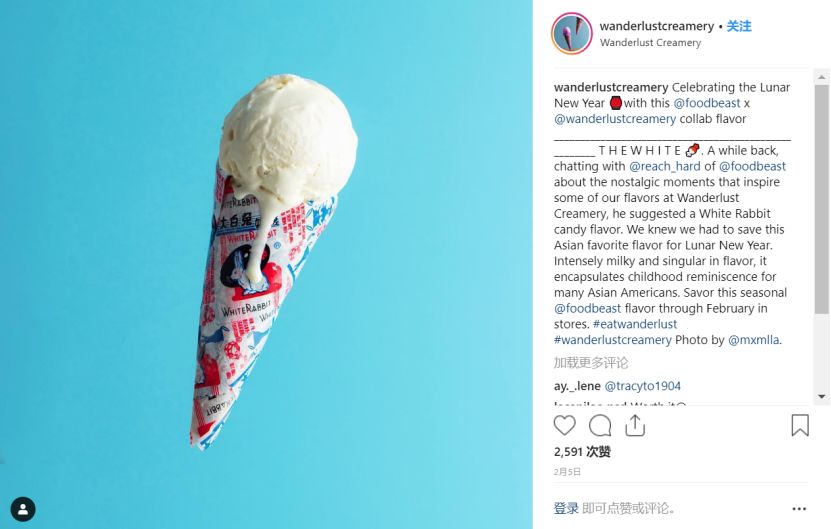 今年的2月1 日,美国洛杉矶一家名叫wanderlust creamery的冰淇淋店为庆贺农历新年,推出了一款“大白兔奶糖”口味的冰淇淋。