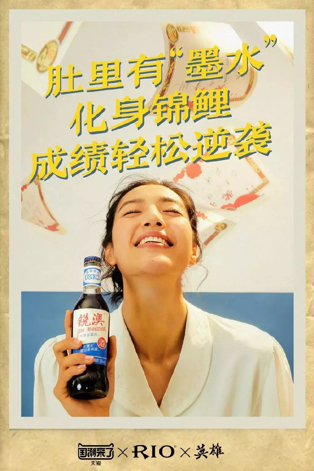 RIO借势国潮的力量,为年轻的自己赋予深厚的文化内涵,通过激发年轻人的情怀,从而拉近与消费者的距离,达成与消费者沟通的目的,增加了曝光度,从而增强消费者粘性,以及提升了品牌信服度。