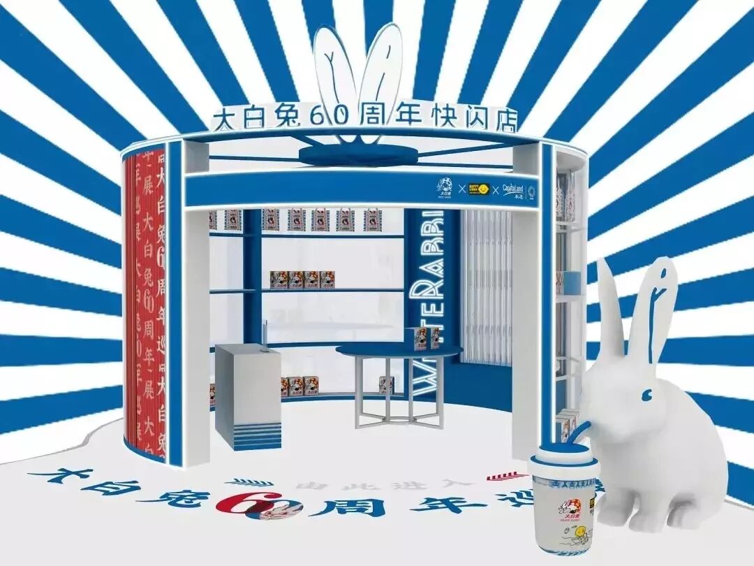 此次的大白兔快闪店,就在显眼的位置大声宣告:大白兔已经60岁了!