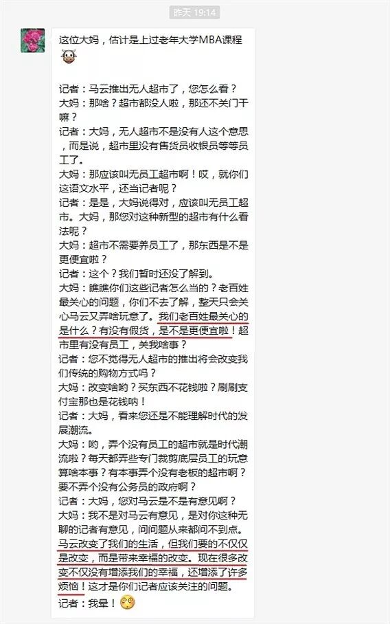 “我们老百姓最关心的是什么?是有没有假货,是不是更便宜啦!超市有没有员工,关我啥事?”