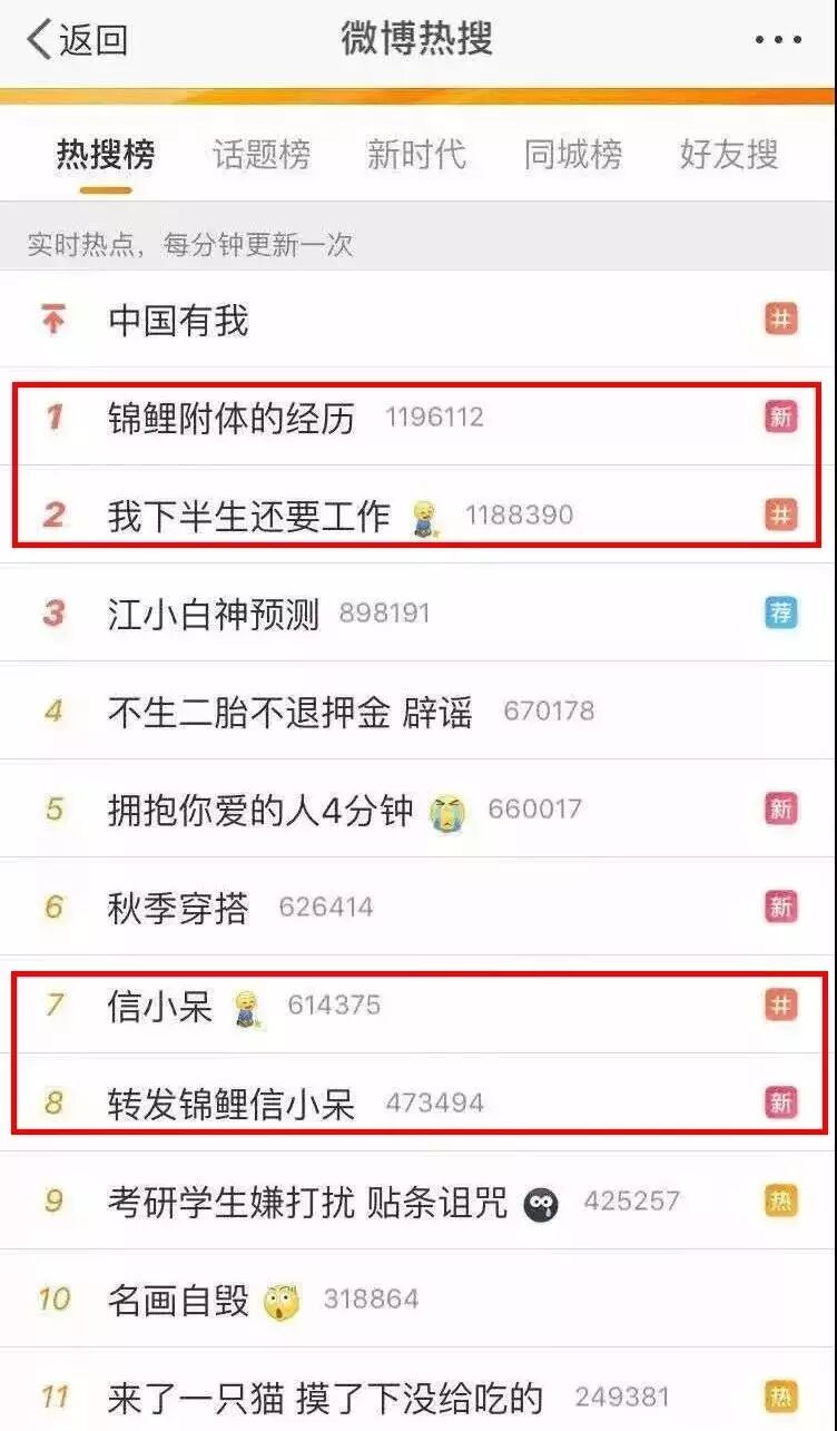 再者,中国锦鲤活动选在了开放式的交互平台微博。微博用户数量多且活跃度很高,再加上支付宝锦鲤活动自带话题效应,吸引众多媒体和网民朋友的自发关注和讨论,一直保持着居高不下的热度,一周互动量即破4百万。