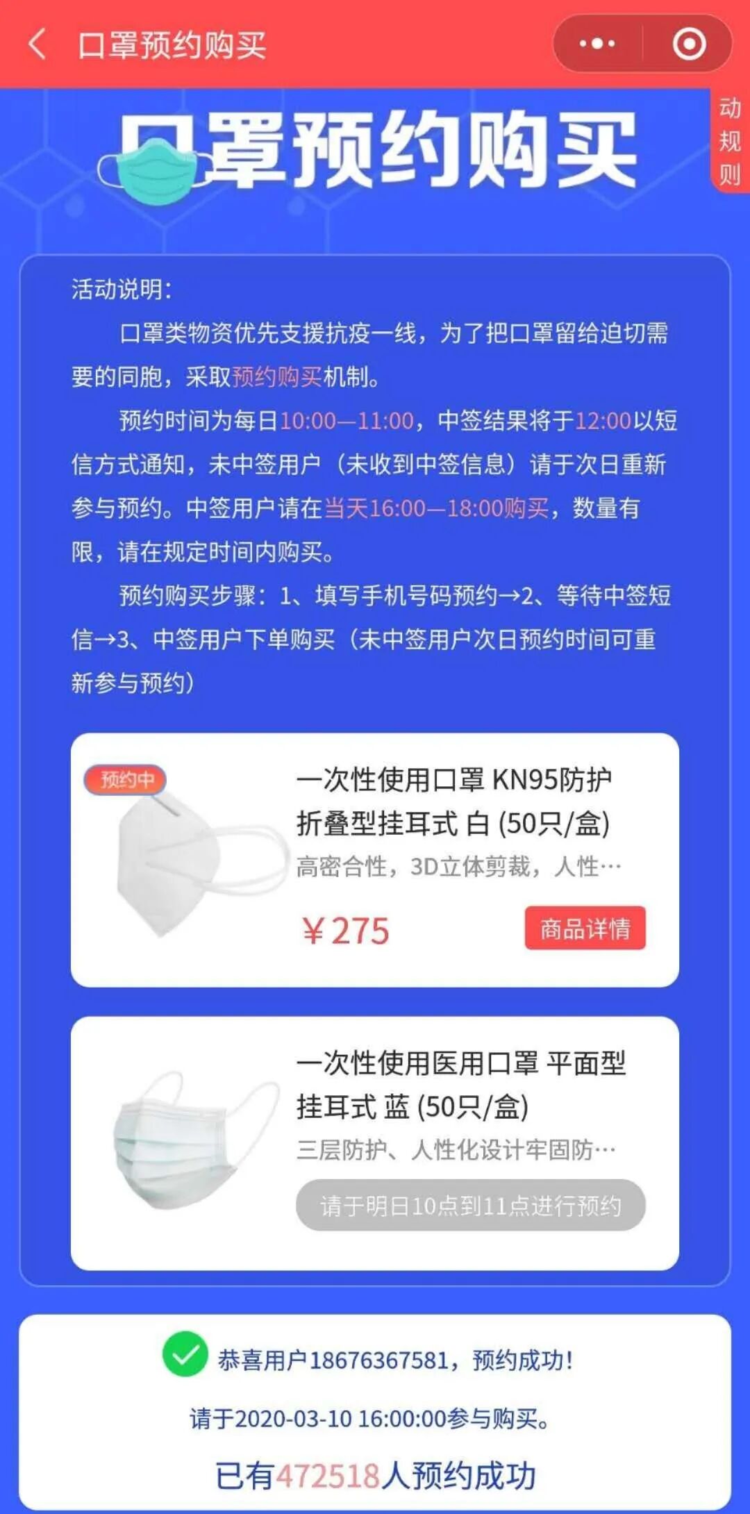 3月10日,格力口罩继续开启在线预约模式。截至上午11:00预约结束,根据董明珠的店数据显示,在线预约的总人数达到了47.25万。