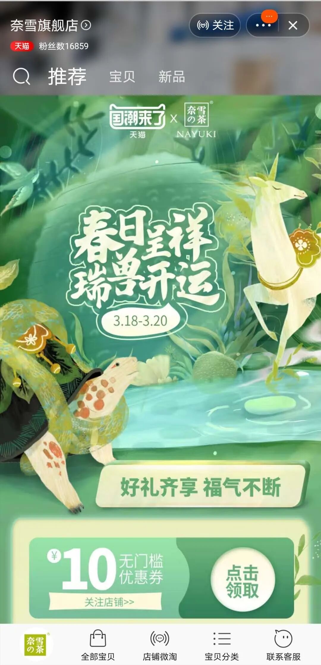 3月18日,奈雪抢先一步,上线了天猫旗舰店。