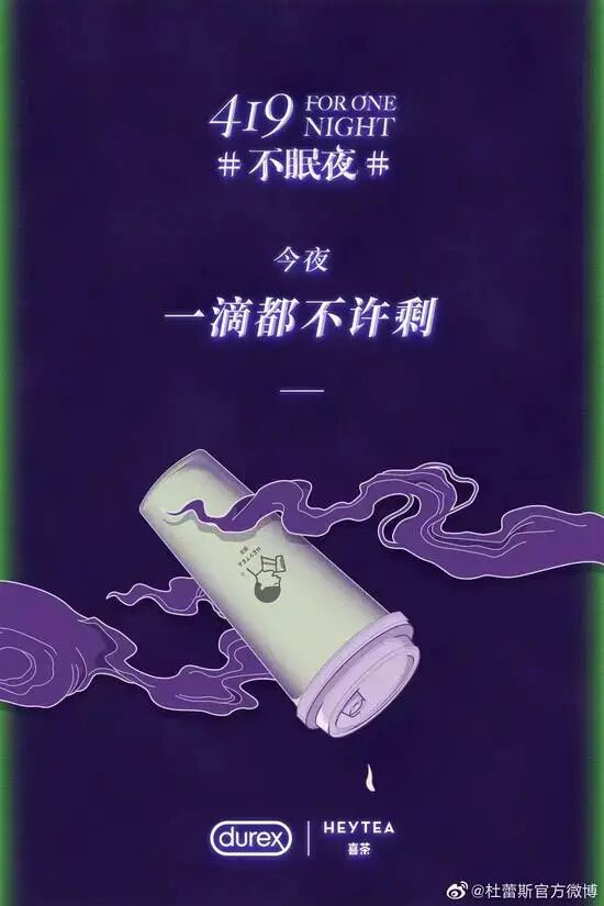比如,此先杜蕾斯与喜茶合作的宣传海报,“唇边的芝士味道”、“今夜一滴不许剩”,让人明显嗅到了低俗热情的味道;再比如,“在山水画家的眼里,每一种山都有自己的名字”,言语间充满了对身体的露骨描述。
