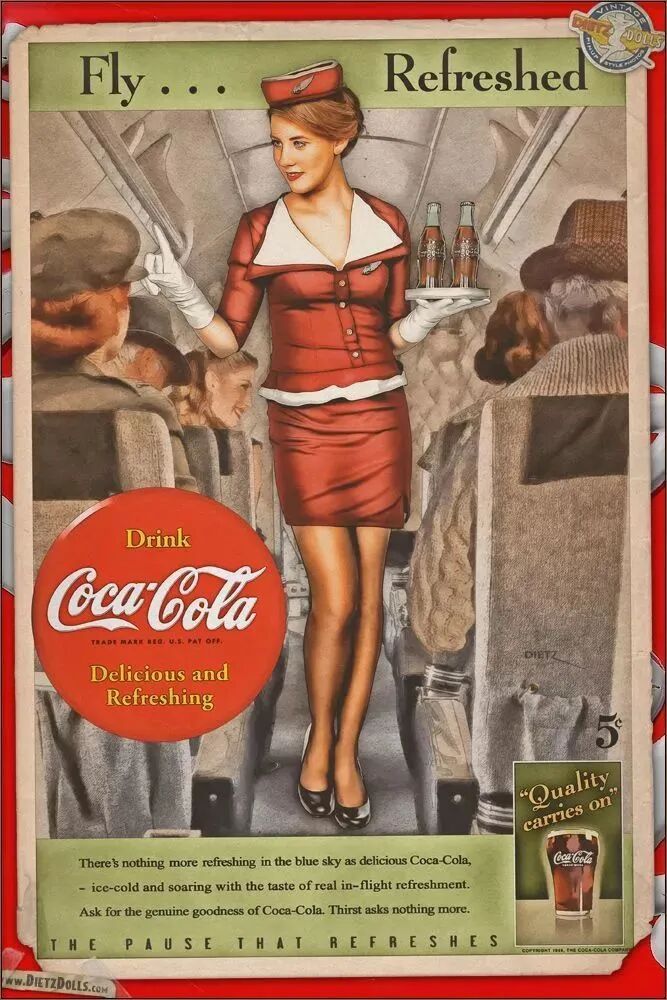 表面上看,海报想要表达的是无论护士还是空姐,都是可口可乐的忠实消费者。不过,在表达方式上,可口可乐是通过“性感”的方式达到的。